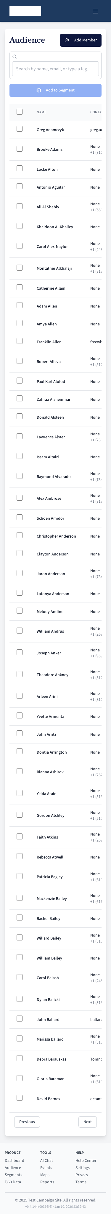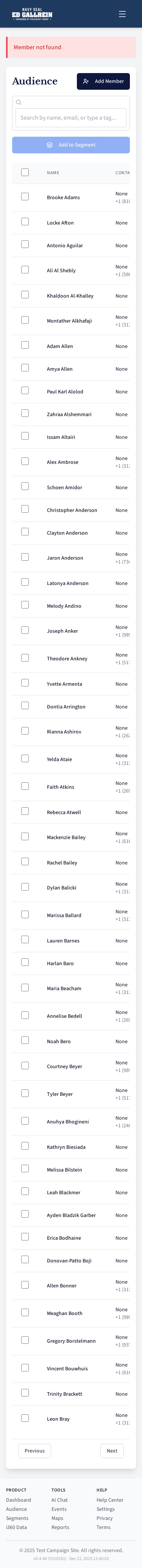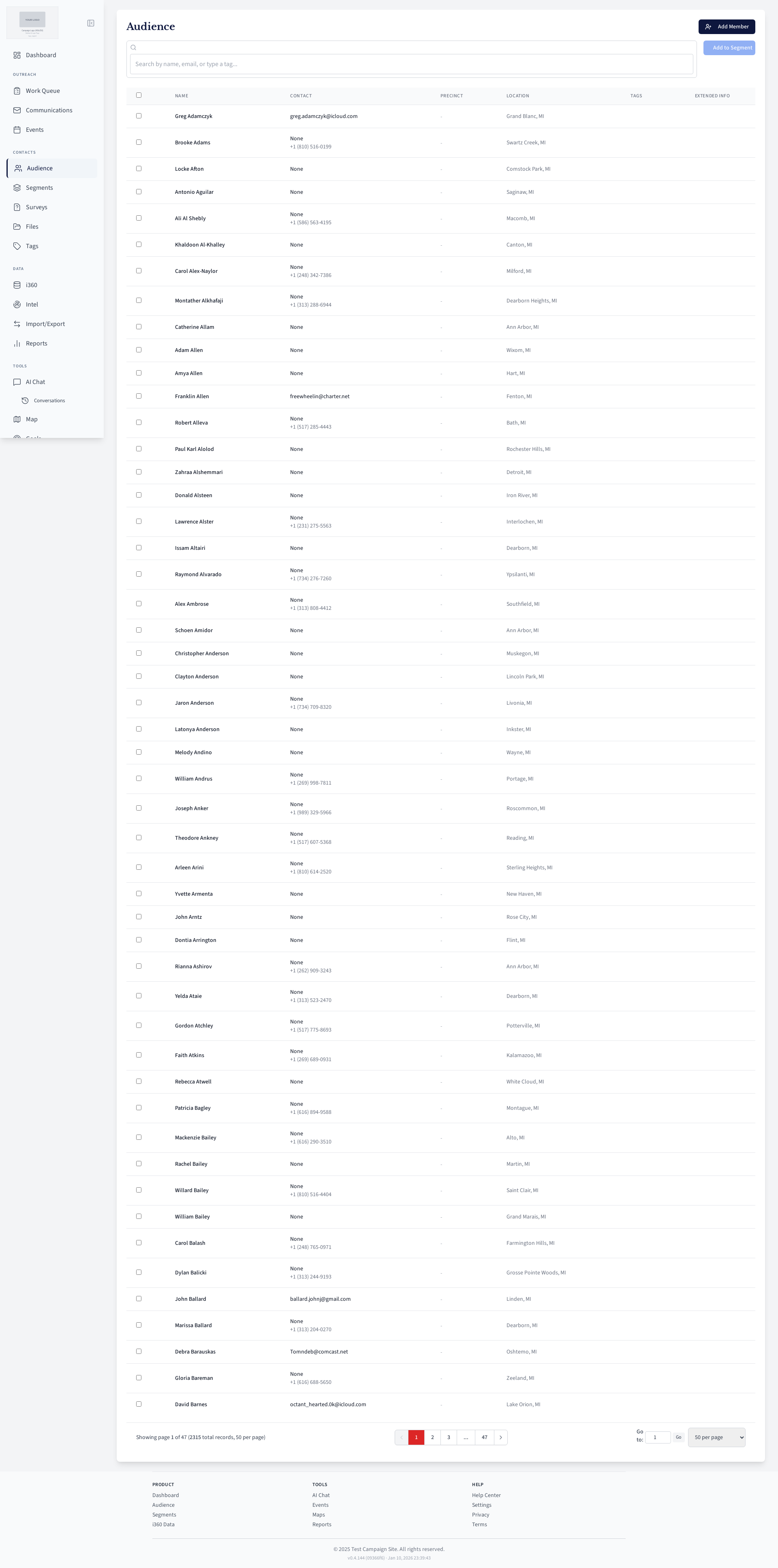 Voter segment management page.
