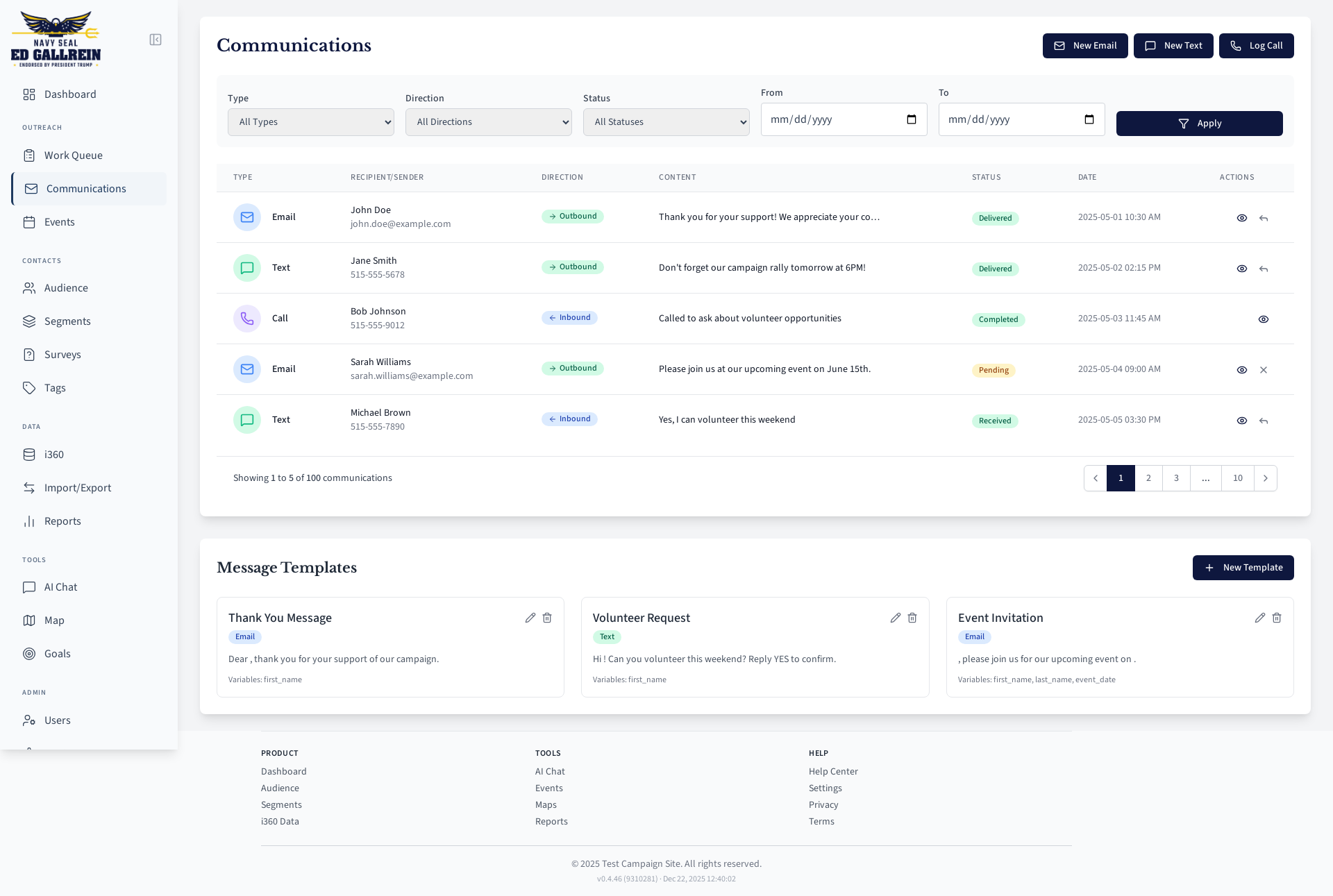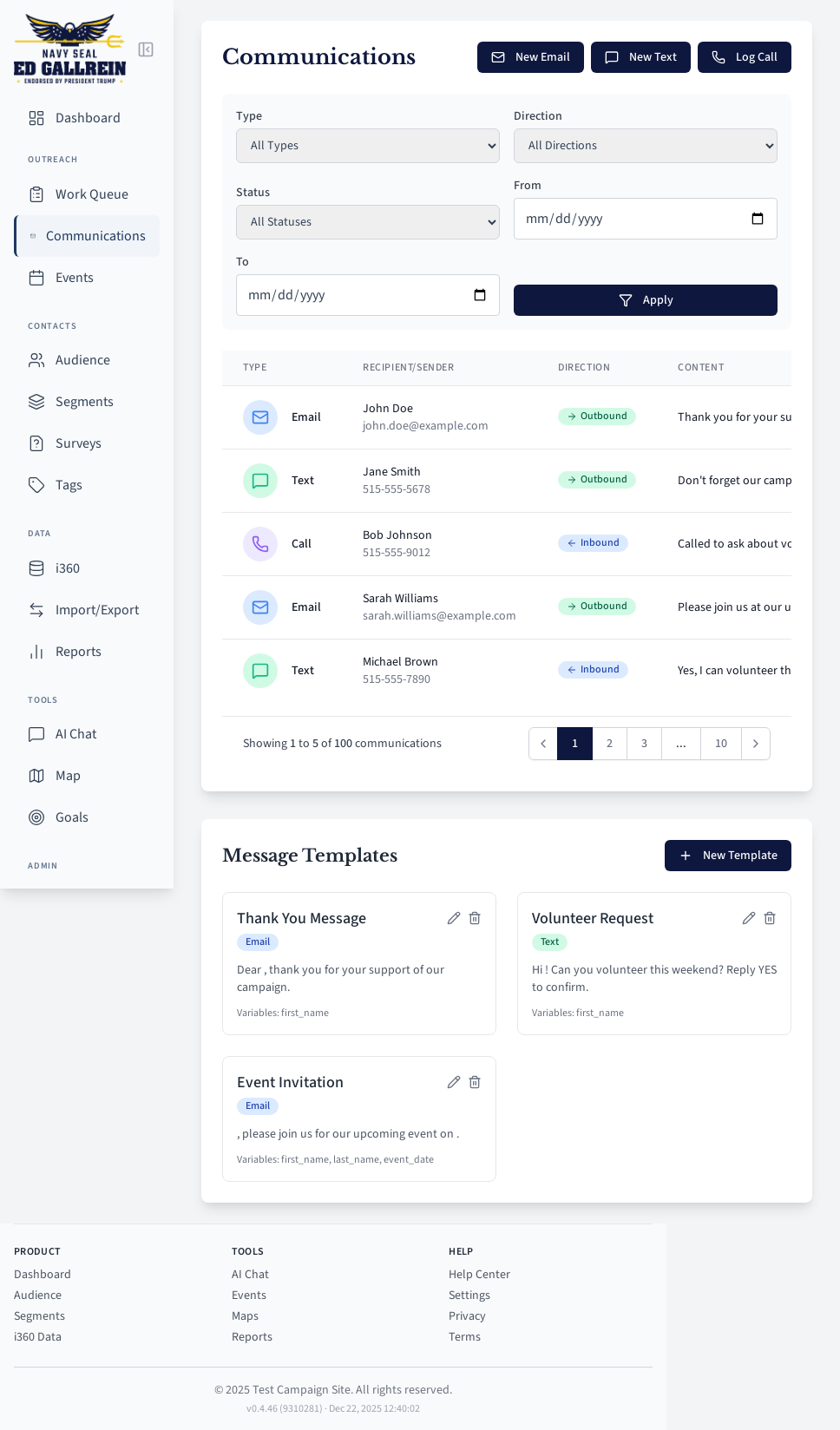 Communication history and templates.