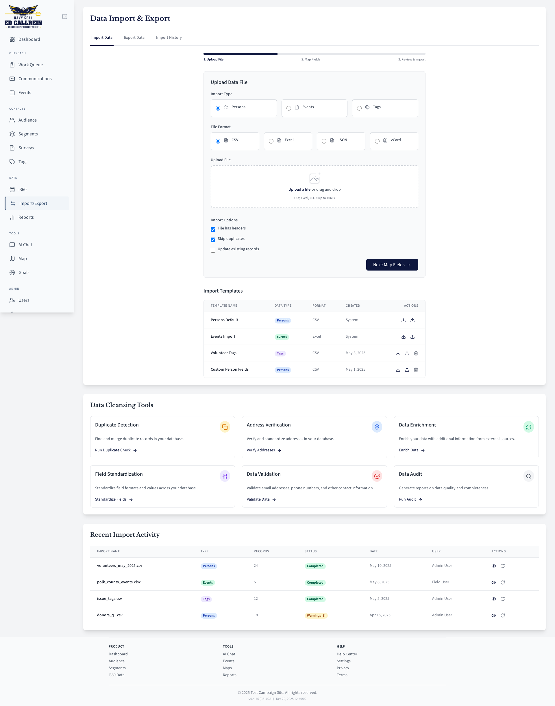 Bulk contact import tool.