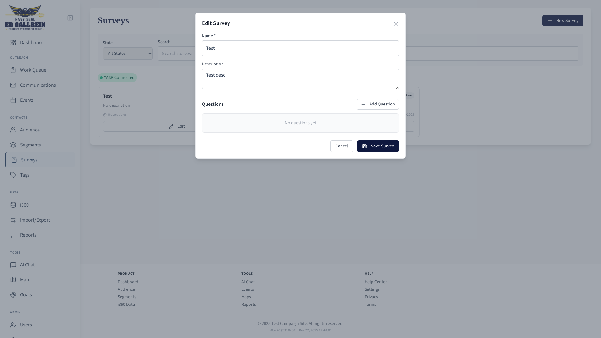 Survey editing modal.
