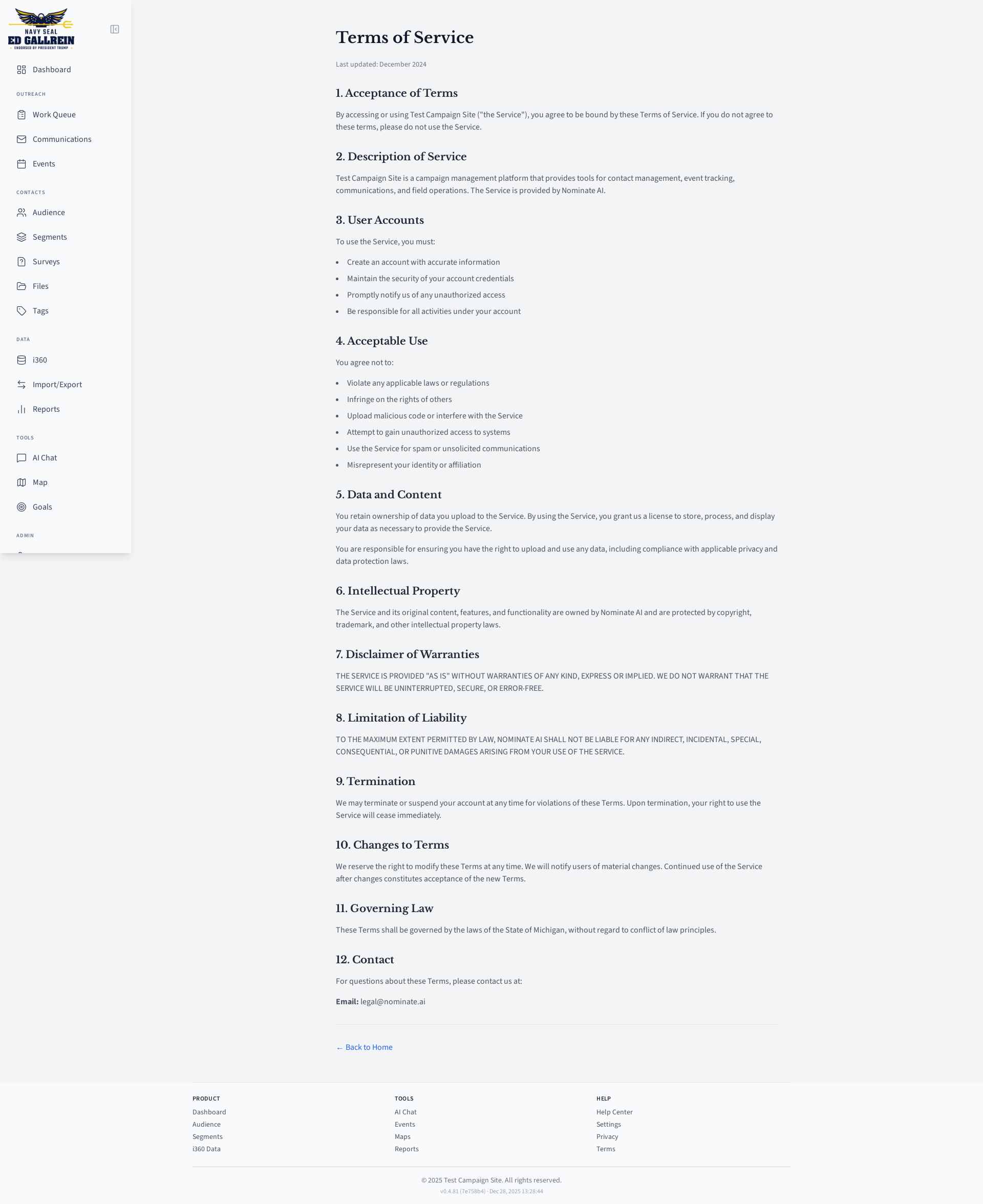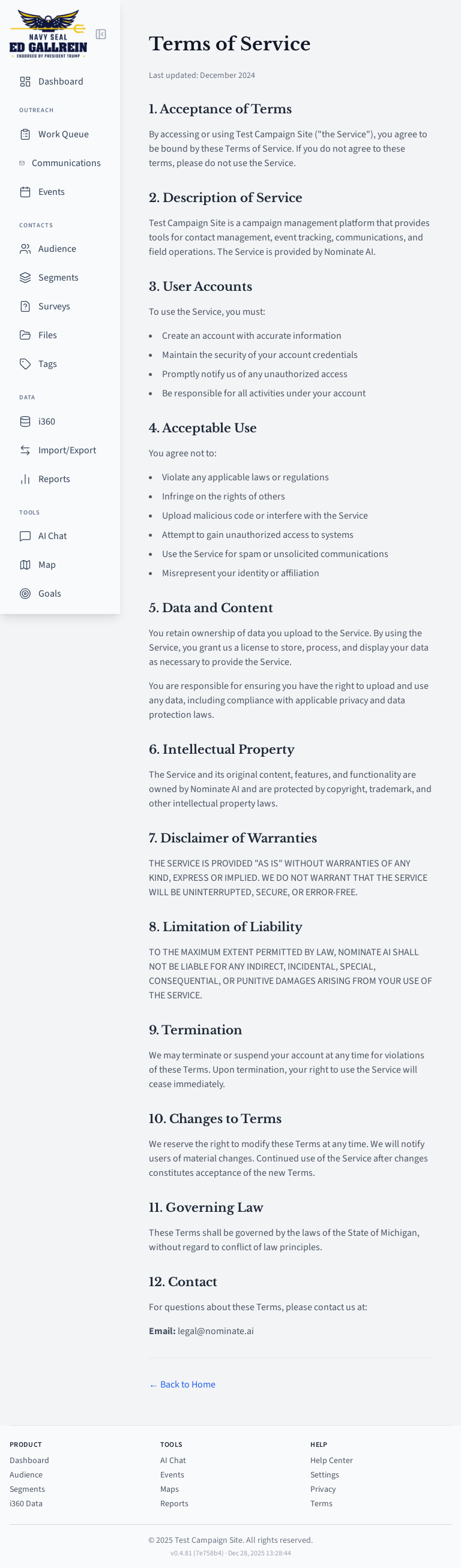 Terms of service page.