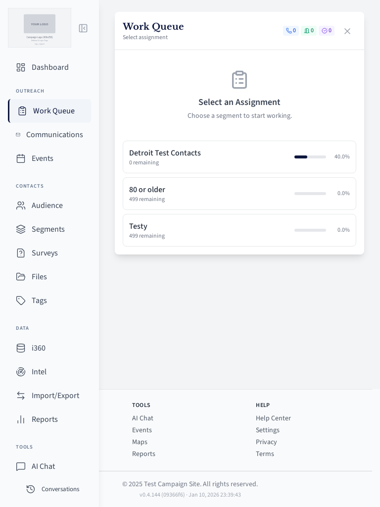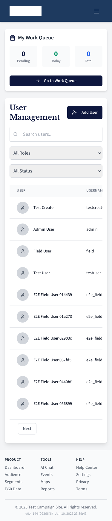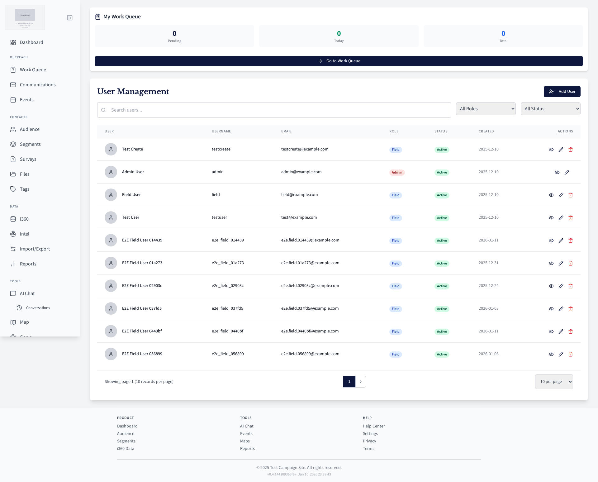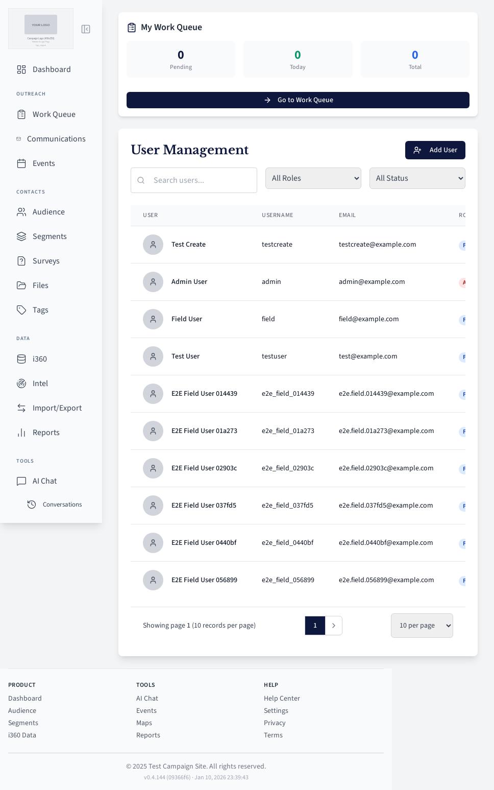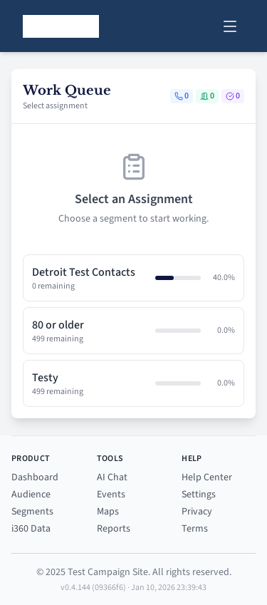 Field user work queue for contacting voters.