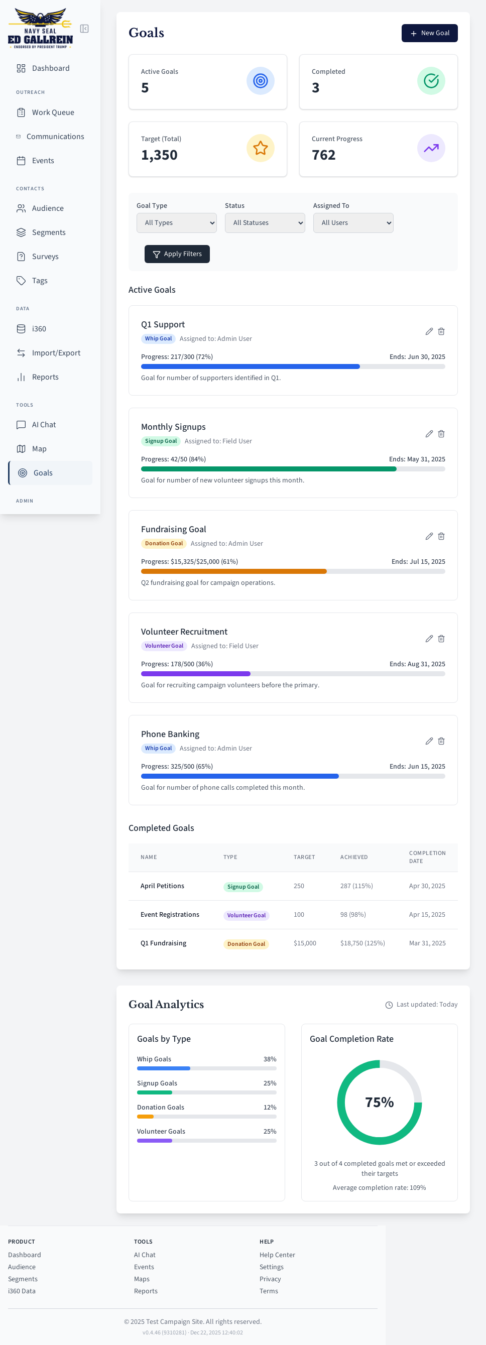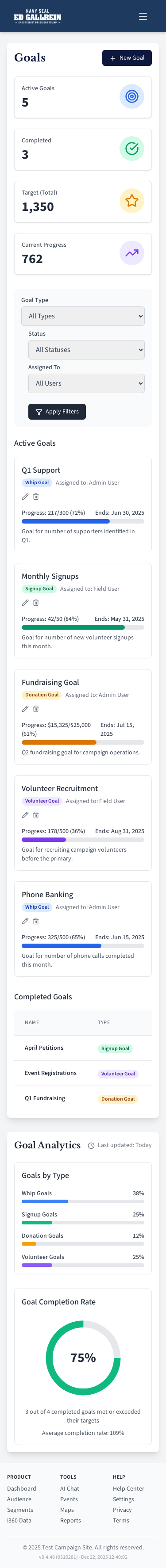 Campaign goal tracking.