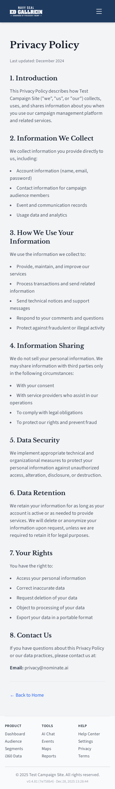 Privacy policy page.