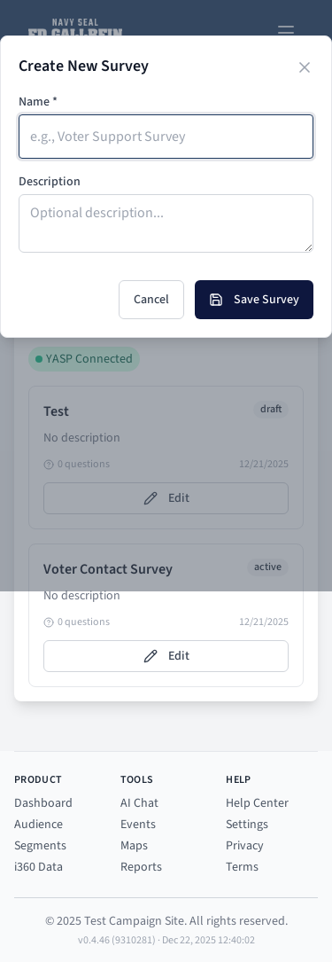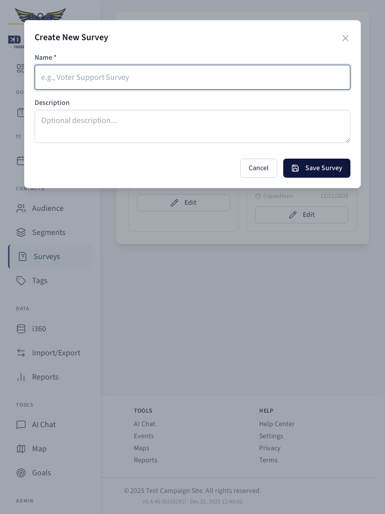 Survey creation modal.