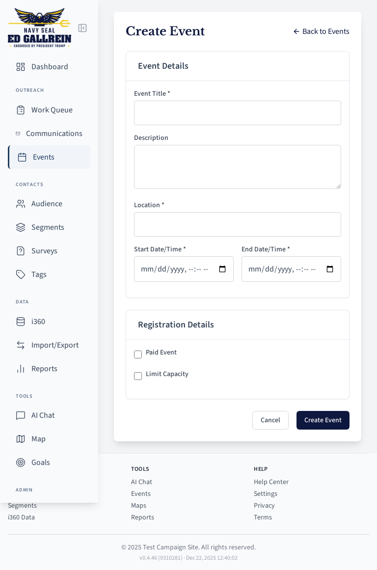 Event creation modal.