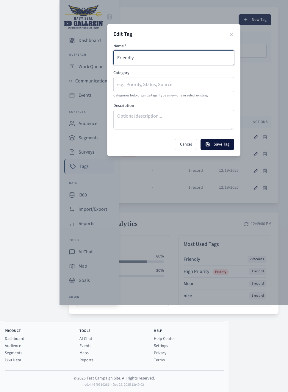 Tag editing modal.